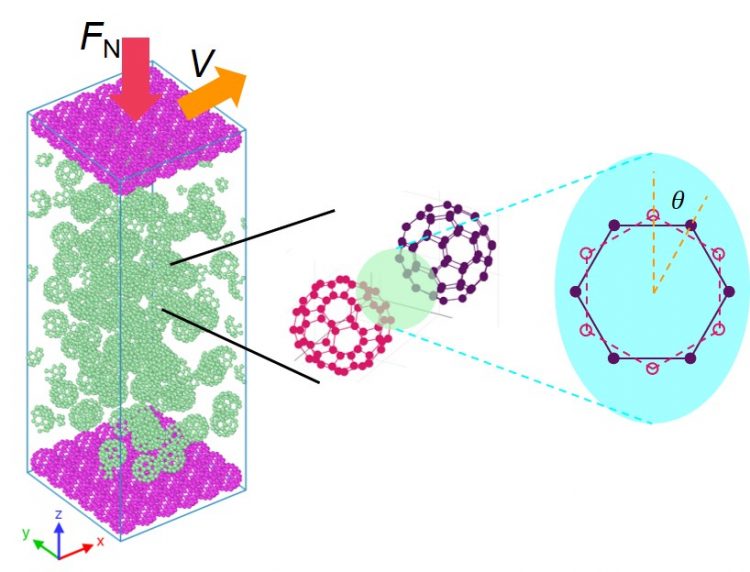 Friction behavior of bulk fullerene ensembles (Simulations)